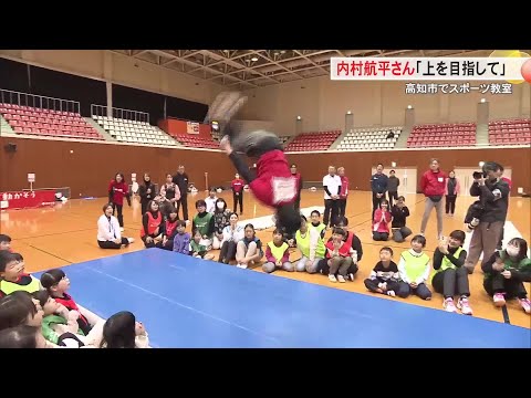 元体操選手の内村航平さんが1月24日、高知市で小学生の親子39組を対象に開かれたスポーツ教室でスポーツの楽しさを教えまし ...