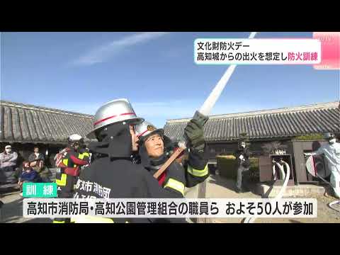 「文化財防火デー」に合わせて、高知城で防火訓練が行われました。