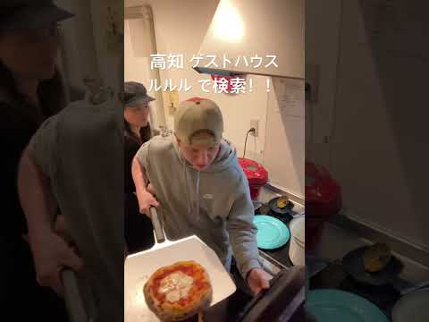 高知 ゲストハウス みんなでピザ体験 ピザ釜 400度で焼く本格ピザ マルゲリータ ゲストとシェア 生地作り バジル モッチェレラチーズ