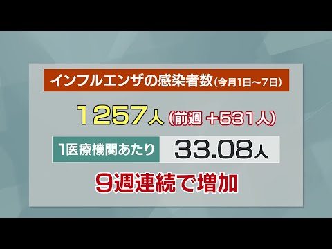 インフルエンザが9週連続で増加し県全域で警報値を超えています。