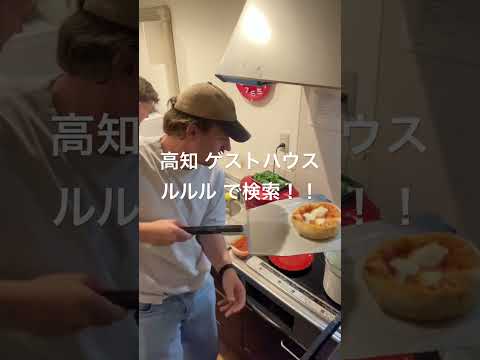 高知 ゲストハウス みんなでピザ体験 ピザ釜 400度で焼く本格ピザ マルゲリータ ゲストとシェア 生地作り バジル モッチェレラチーズ