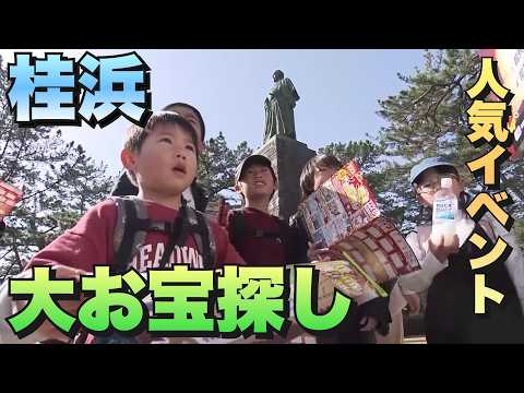 3連休の最終日、桂浜ではクイズを解きながら公園内をまわるイベントが開かれ、多くの家族連れで賑わった。